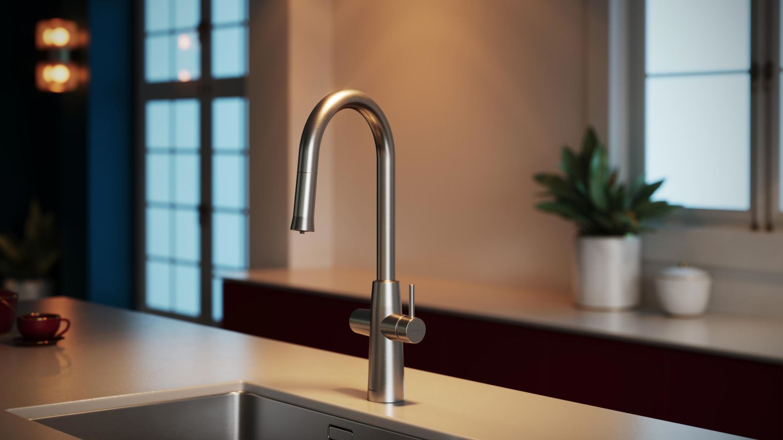 شیر آشپزخانه دومنظوره مدل دنیستر | کروم مات